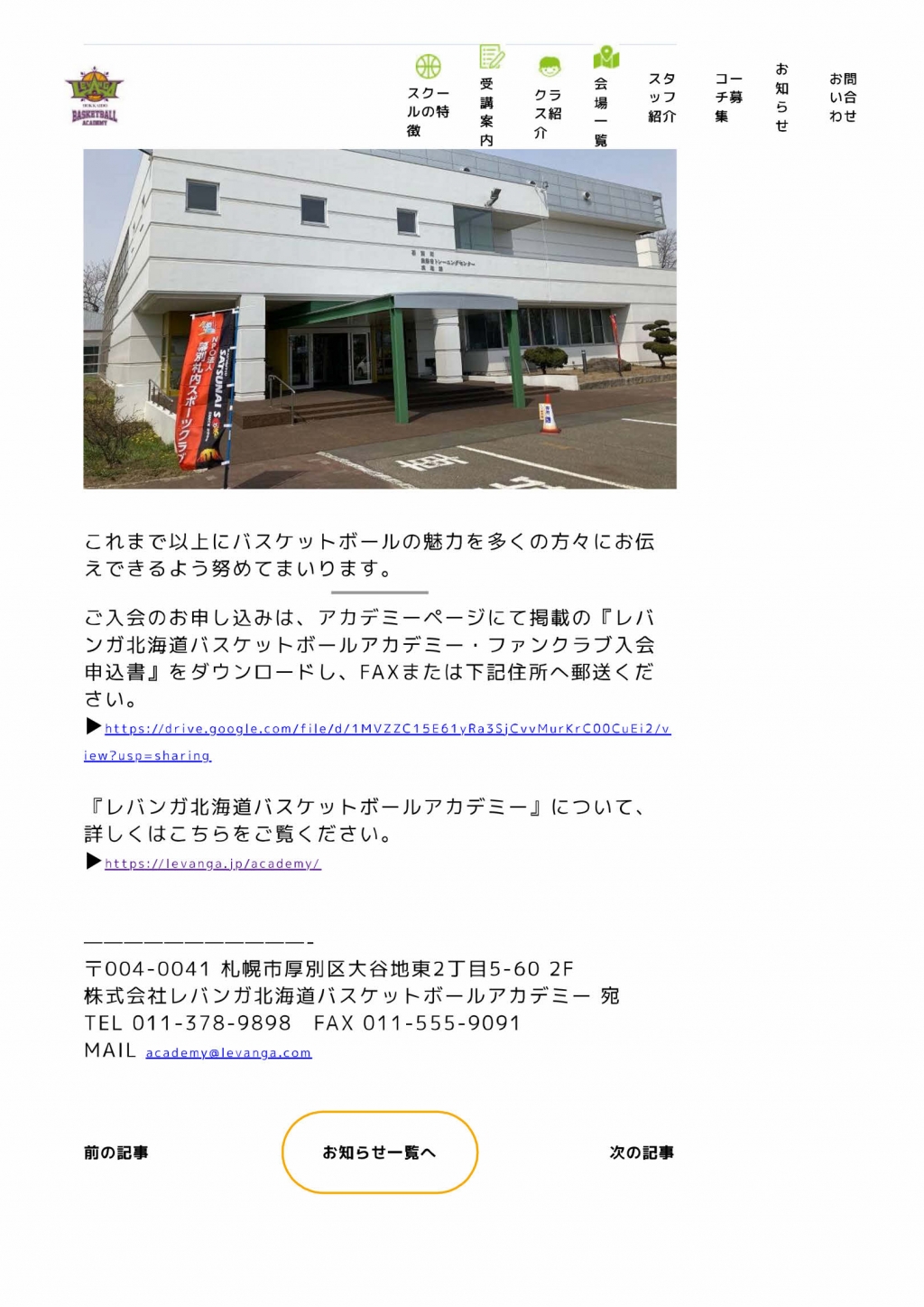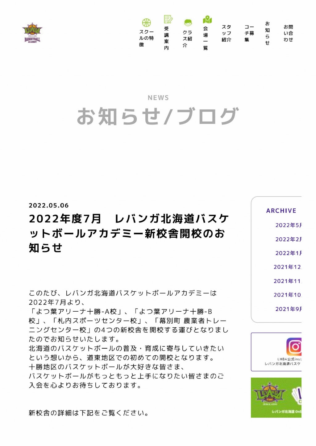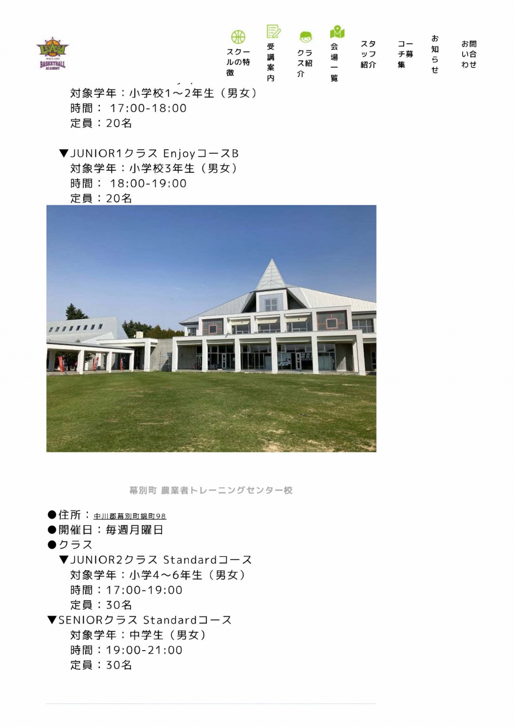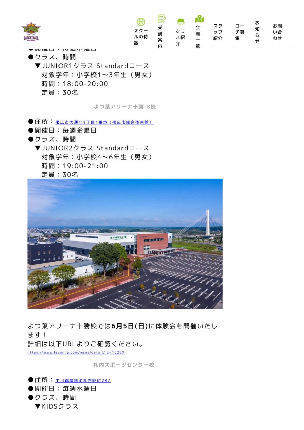 『レバンガ北海道バスケットボールアカデミー』が、幕別町で開校されます