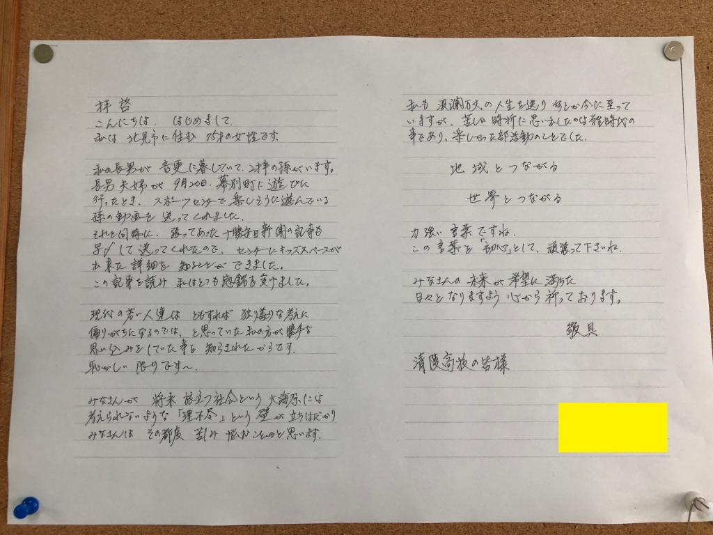 何とも心あたたまるお手紙を受け、高校も我々も、本当に嬉しい気持ちになりました
