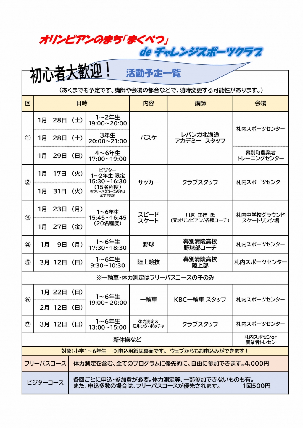 「オリンピアンのまち『まくべつ』deチャレンジクラブ」