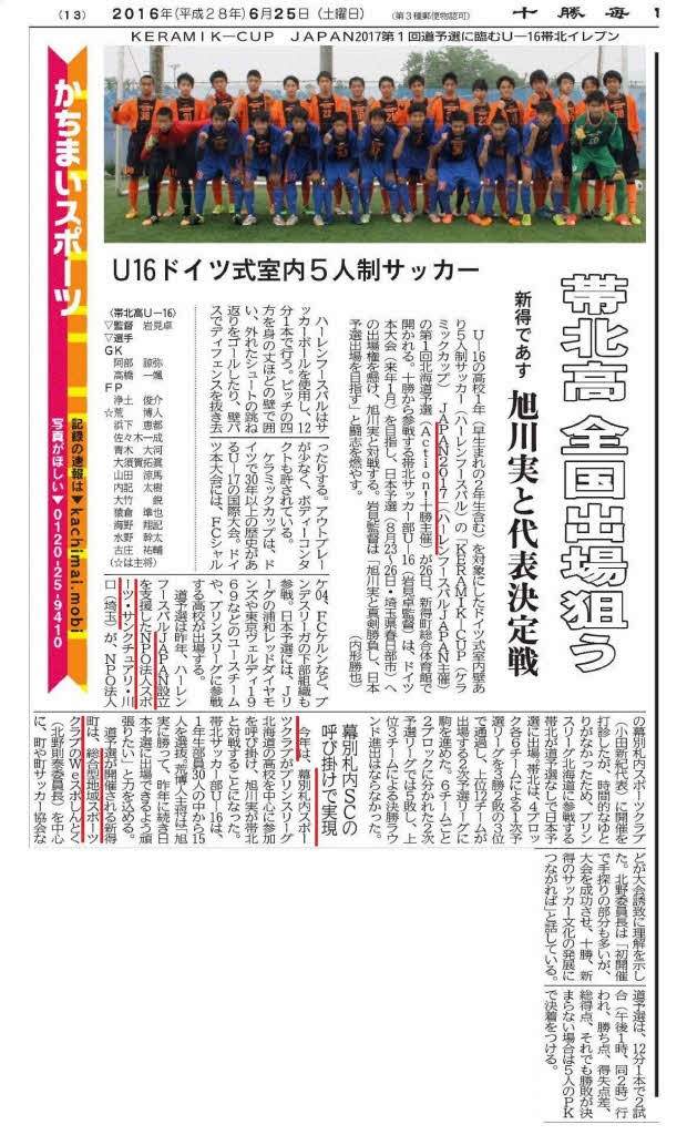 一昨年は帯広北高校を推薦出場。