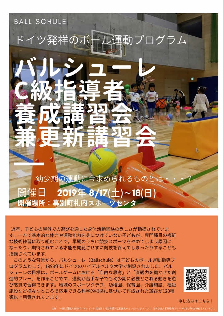 ドイツ発祥の運動プログラムの指導者養成講習会を、幕別札内スポーツセンターで開催します