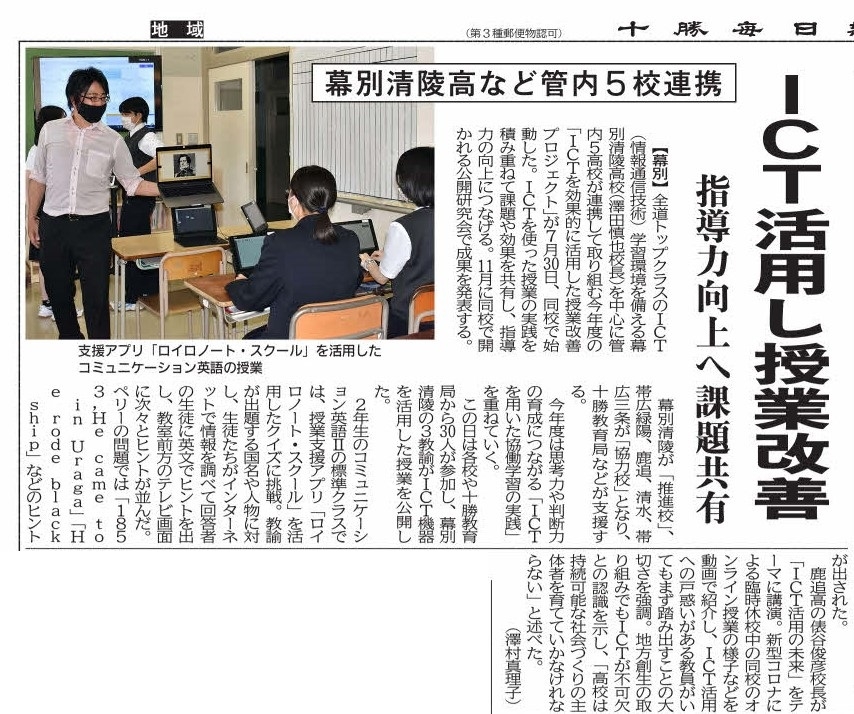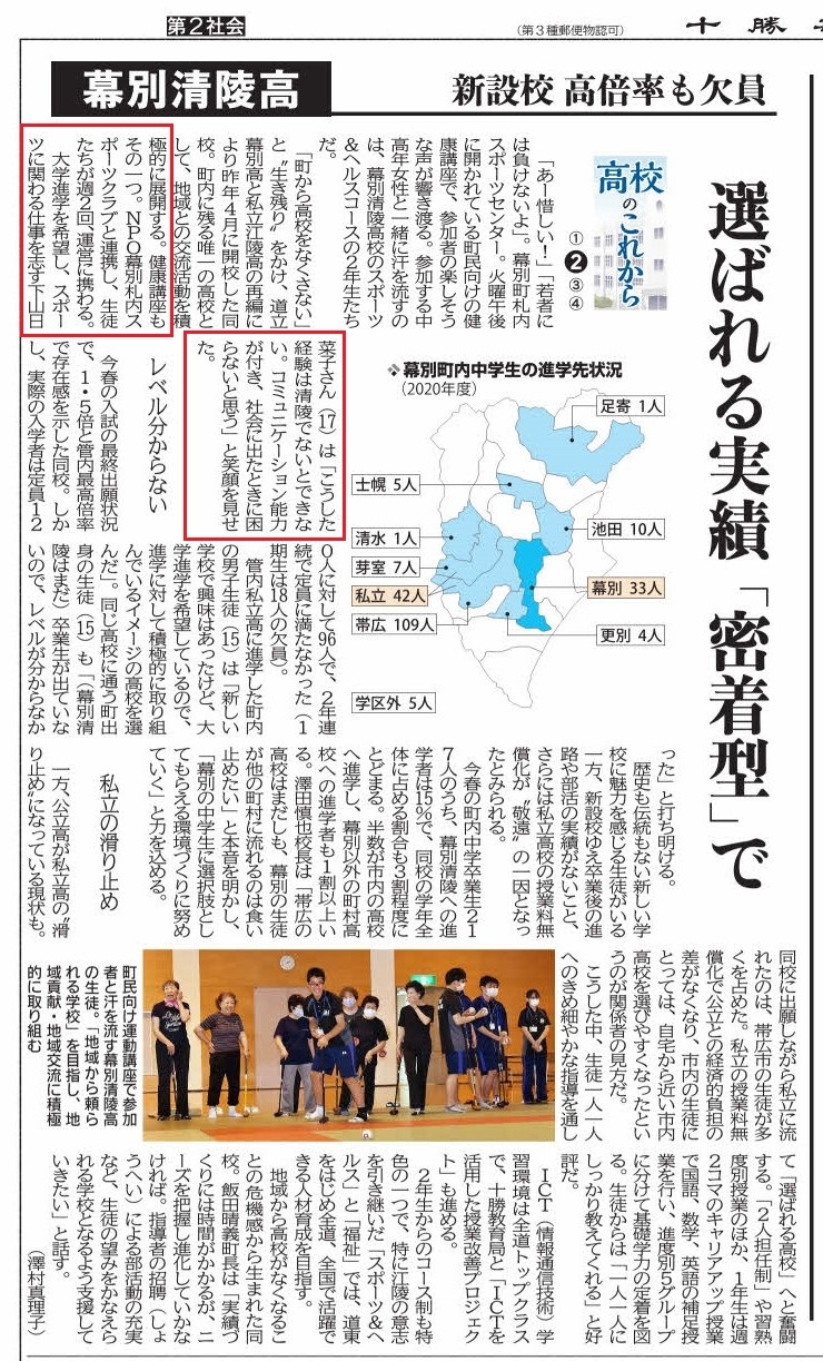そんな清陵高校さんとの連携も含めた記事が、十勝毎日新聞社さんに掲載されました。