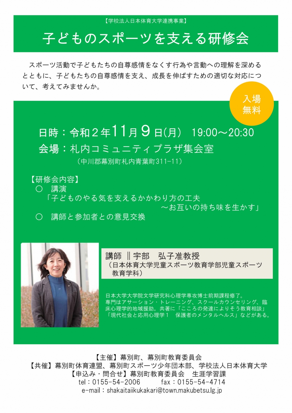素敵な講師の方をお招きして、まさに「指導者」や「保護者」の皆様を対象とした研修会となります