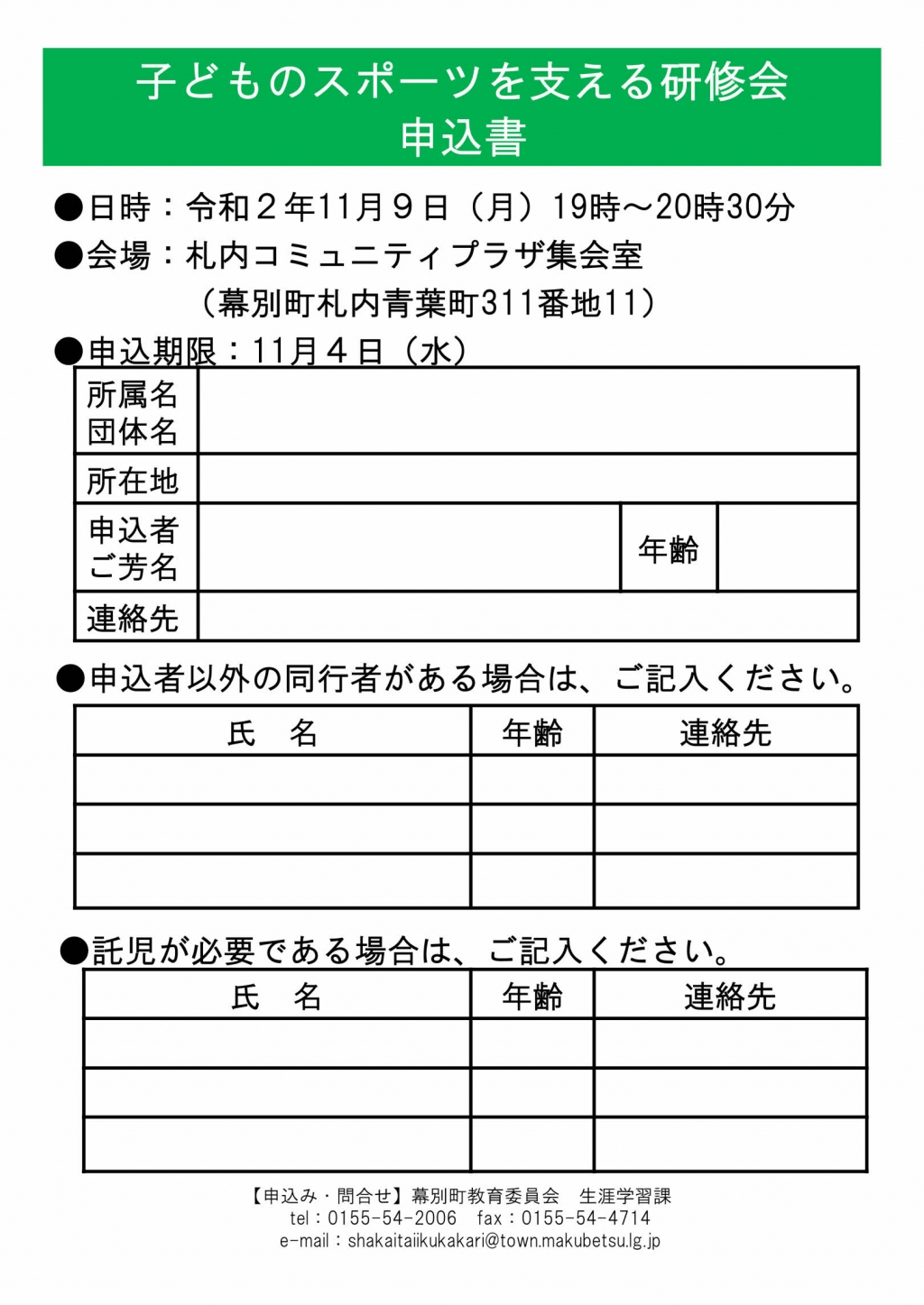 弊社が事務局を務める「幕別町スポーツ少年団本部」が共催する事業の紹介です
