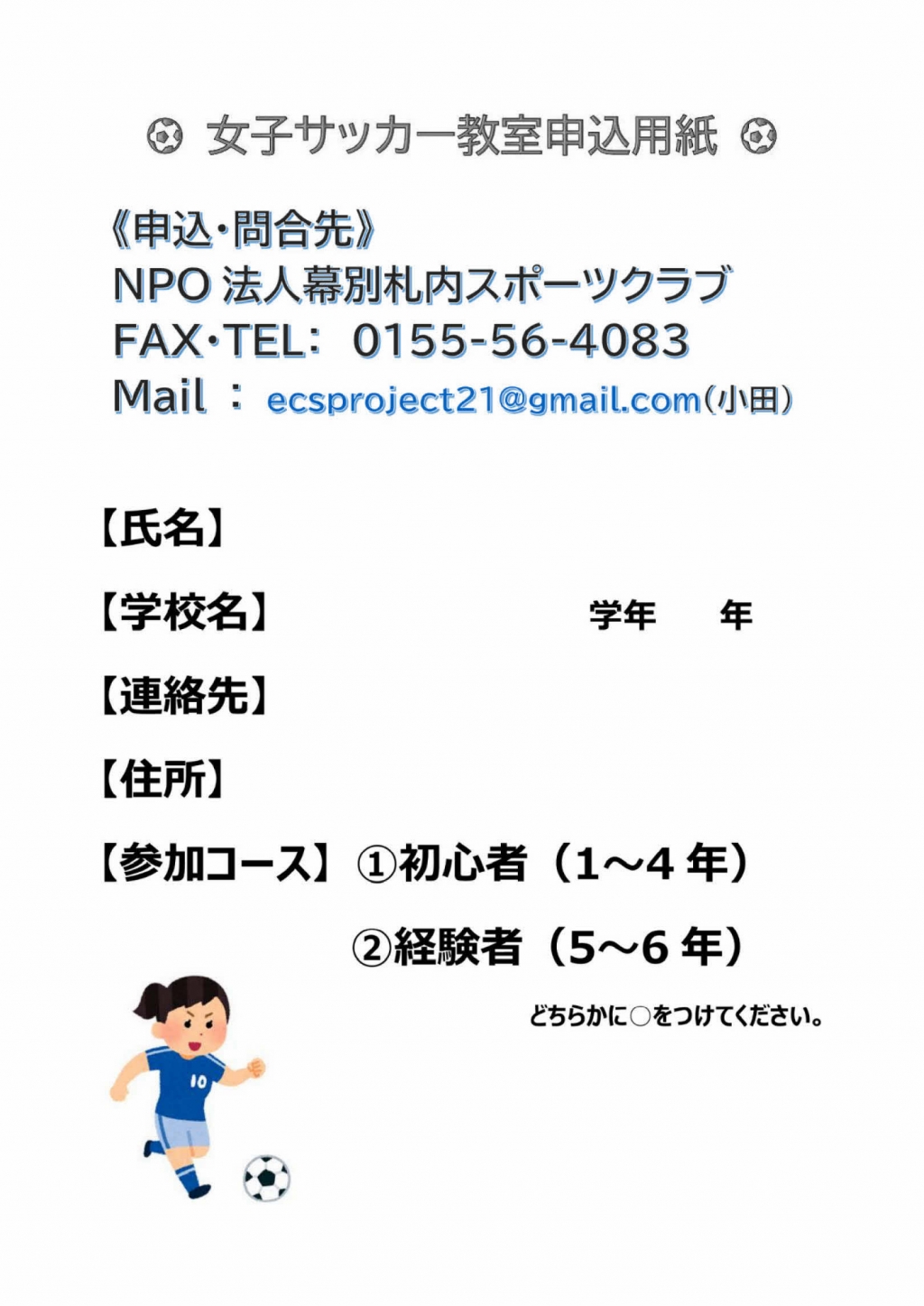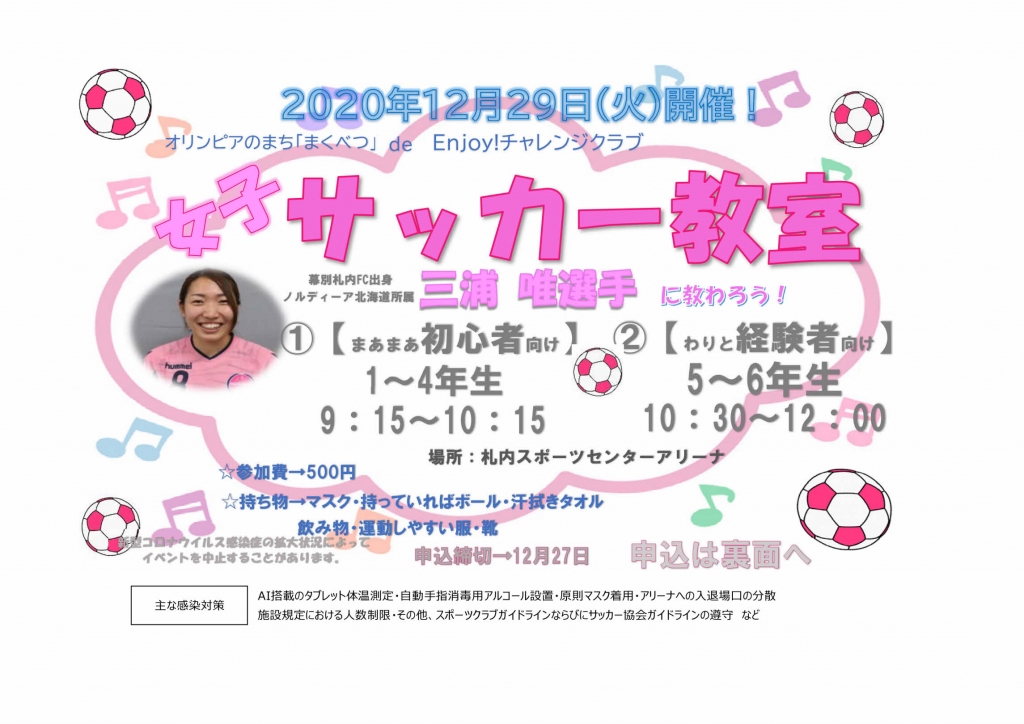 クラブ出身で、現在はノルディーア北海道に所属する三浦唯選手による女子サッカー教室を初開催します