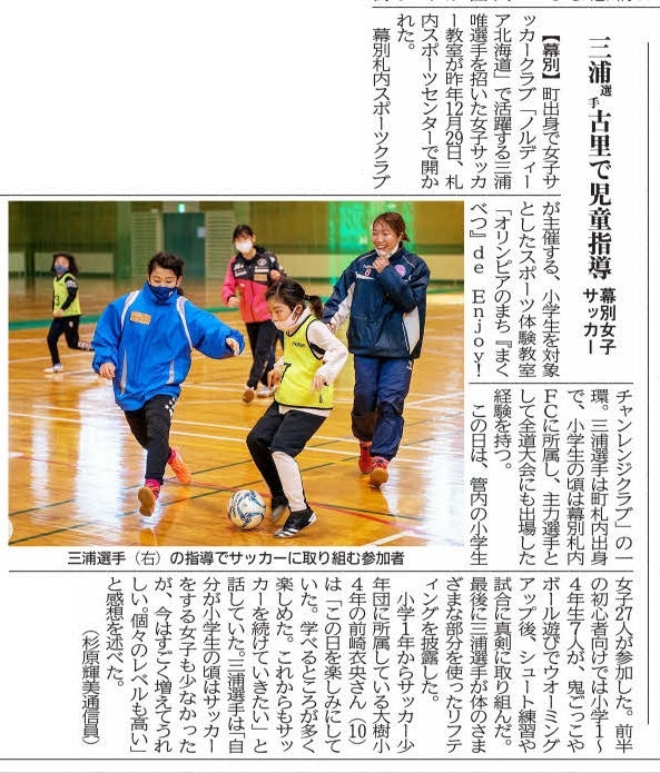 そして、12月29日、彼女とともに女子サッカー教室を開催し、十勝管内から多くの女の子たちが集まってくれました