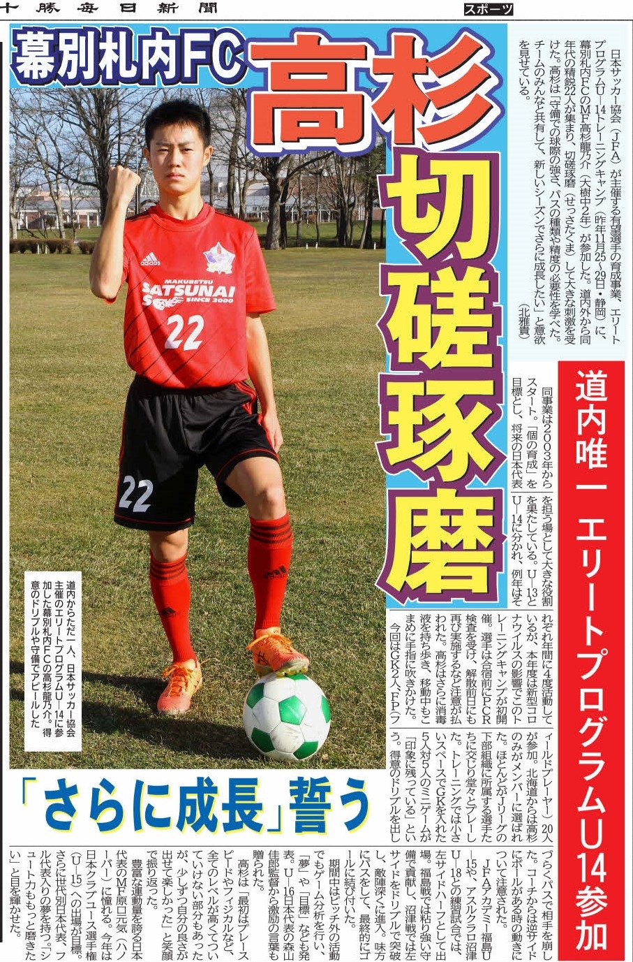 かなり前の十勝毎日新聞社様の記事になりますが、当クラブのサッカーチームの選手を紹介いただきました