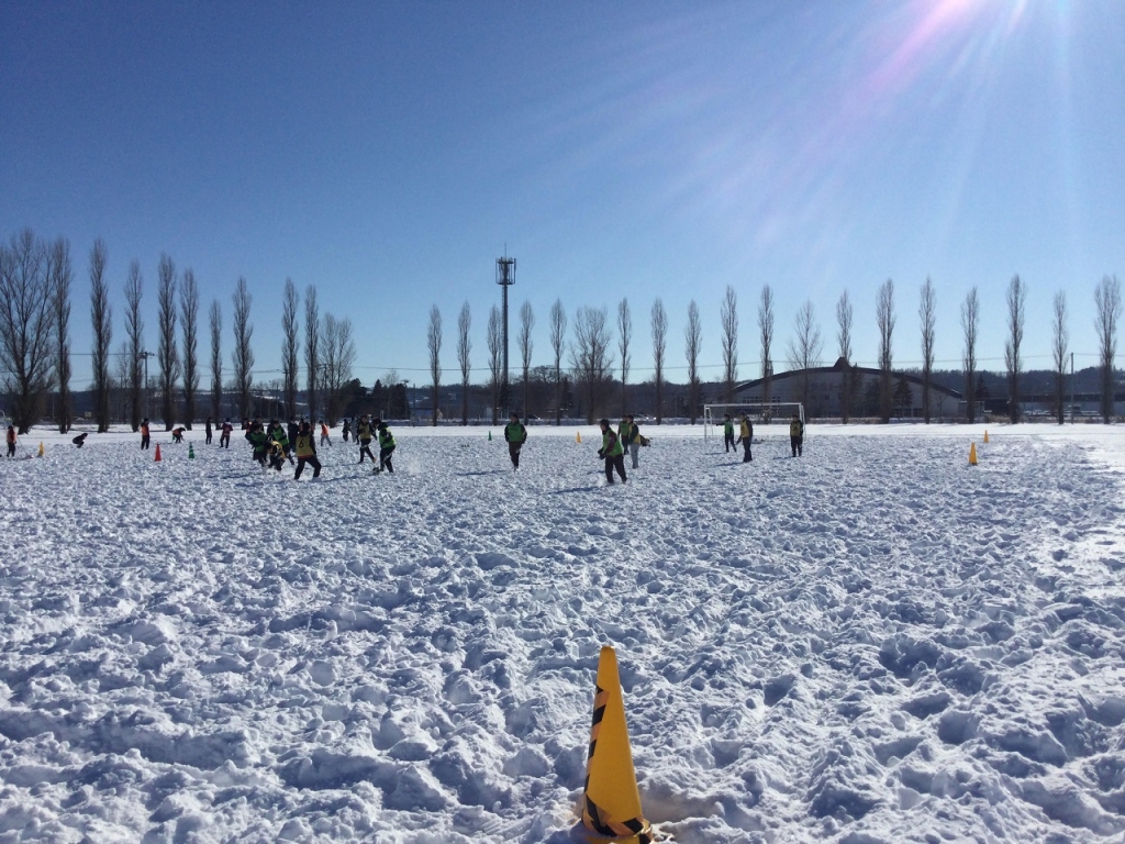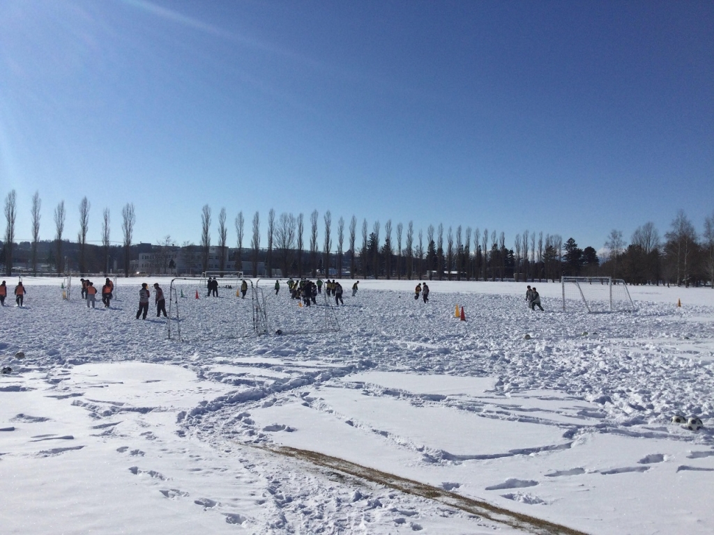 最高気温が常にマイナスという厳しい条件でも、広い場所で思いっきりボールを蹴ることができれば、中学生たちは喜んでプレーしれくれます