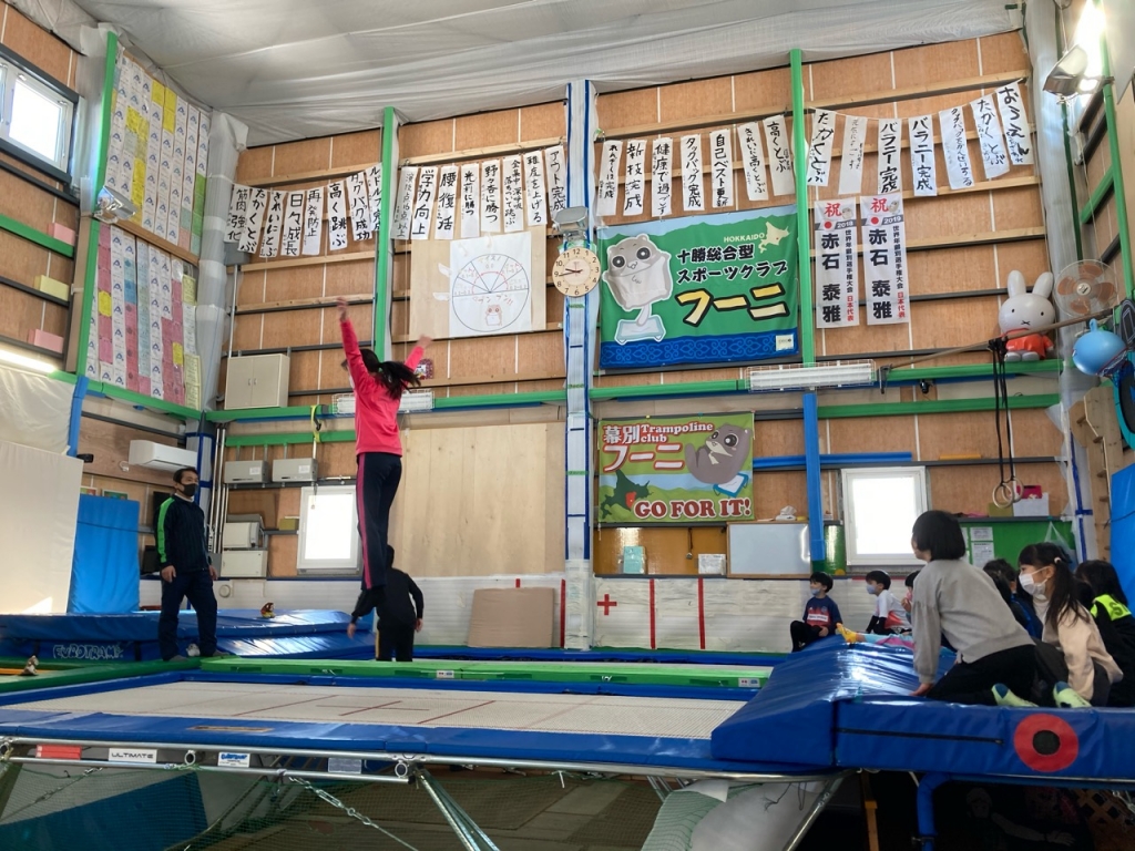 幕別出身の現役トップアスリートにちなんだ種目を行っていますが、この日は、トランポリンでした