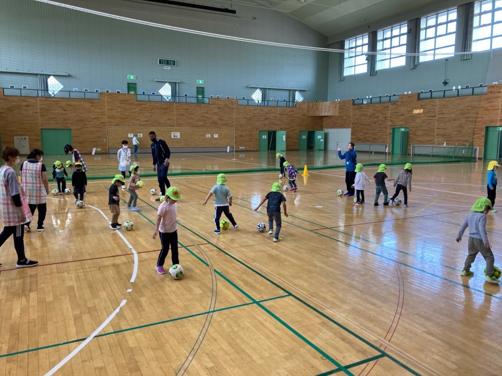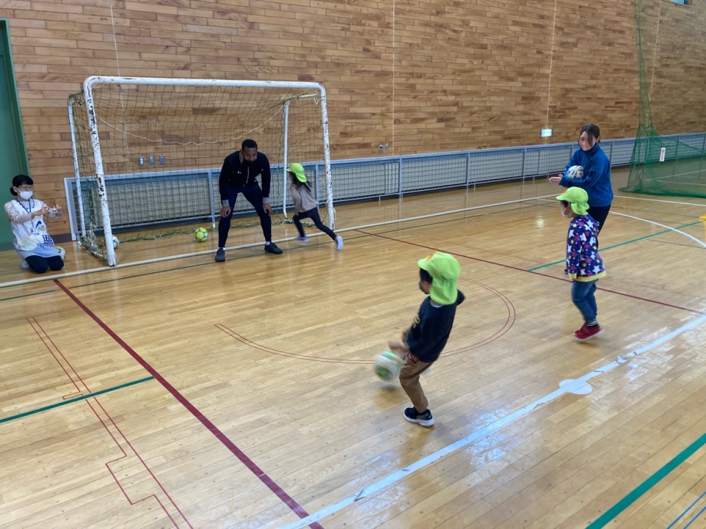 足でのボール扱いに苦戦した様子でしたが、子ども達の笑顔がたくさん見られました