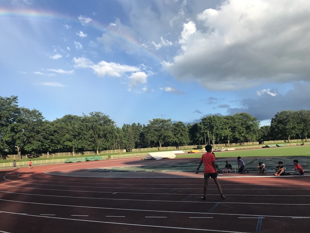 雨が降っていないのにも関わらず、虹が現れたのでビックリです