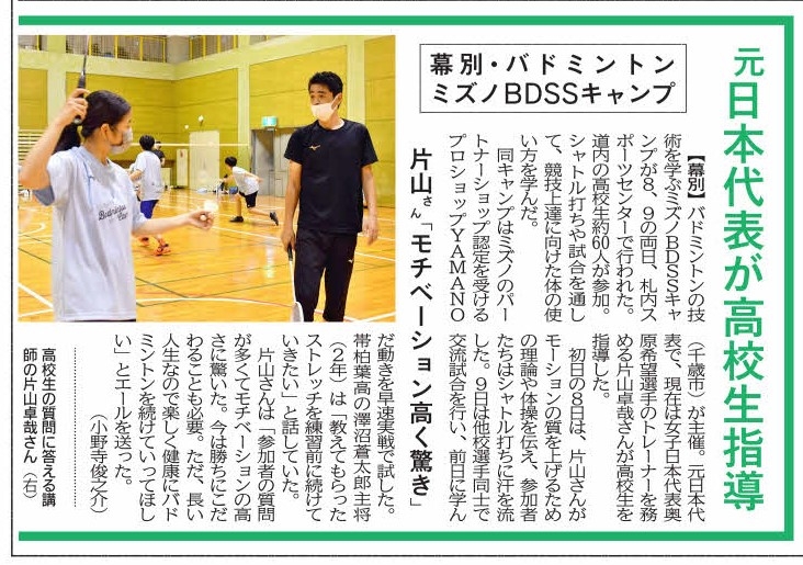 世界チャンピオンの奥原希望選手のトレーナーであったり、JR北海道の選手たちも来られました。