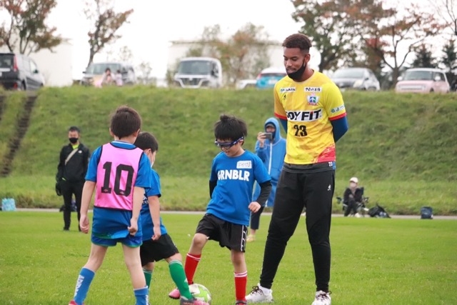 明治安田生命様とスカイアースがコラボをしてサッカー教室が十勝川河川敷で行われ