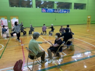 みなさん、こんにちは!フレイル予防教室は70代から90代の方々が集まっており、90代の方でも元気に講座を受けています