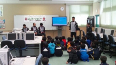 パソコンルームで食育のお話です。