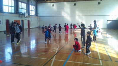 その後、体育館に移動してサッカーの練習が始まりました。