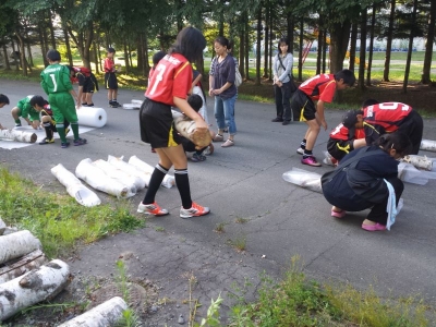そして、保護者の皆さまの協力のもと、終了後にはクラブハウスに向かい白樺木材梱包作業