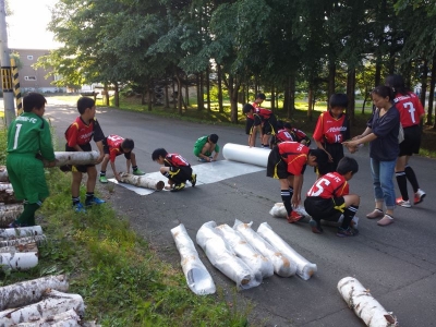 作業に取り掛かる前に、仮設住宅で私が直接見てきた子どもたちの様子や地域の皆さんの様子から、北海道の子どもたちが自由にサッカーができることのありがたさ。そして、この白樺木材がどれほど喜ばれ役立っているのか、そんな話をさせてもらいました
