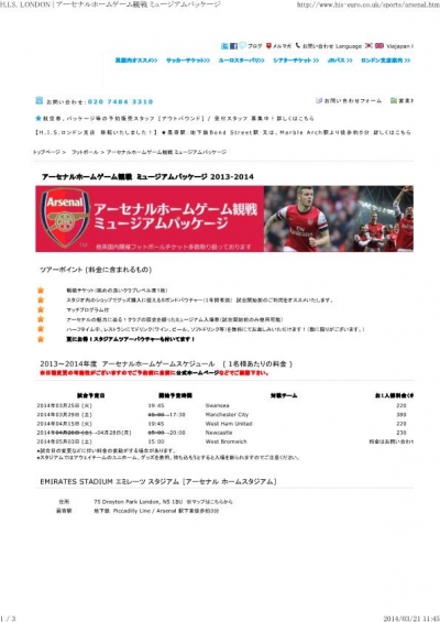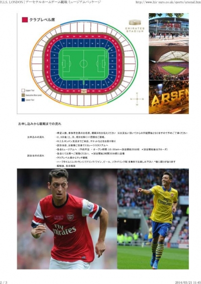 ③アーセナルVSマンチェスターシティ戦観戦などのツアー
