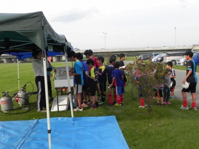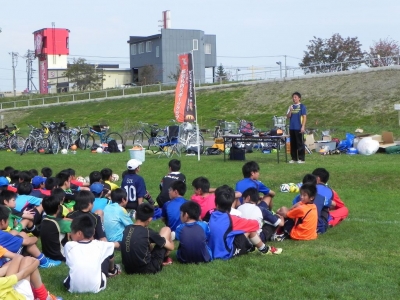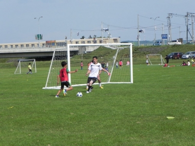 「コーチ陣、事前準備していただいた父兄の方々に感謝です。今回始めての参加でした。普段会う機会のないフットサルサークルに入っていないお父さん方と親睦を深めることができました。ちょっとした環境とサッカーボールがあると世代を超えて楽しめるのがすごいですね。夕暮れの札内橋から感動してきました。中学生中心チームにおなか一杯遊んでもらいサイコーに楽しかったです! 個人的には田中コーチからパスをもらったときブルっちゃいました(笑)」