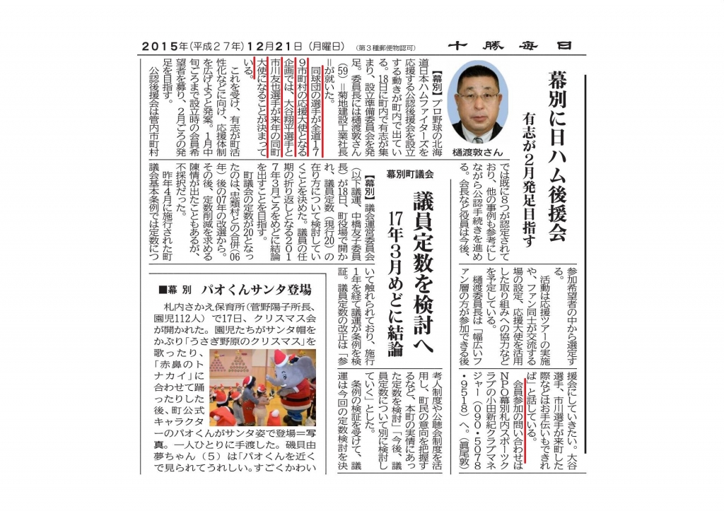 何といっても、2016年の幕別町応援大使として、あの大谷翔平選手が決まりましたからね。。。