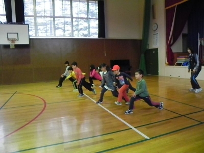 こちらは文科省事業ではありませんが、町村の小学校から依頼があり、15日から協力させてもらっています。運動会に向けて、走り方の指導です![]()