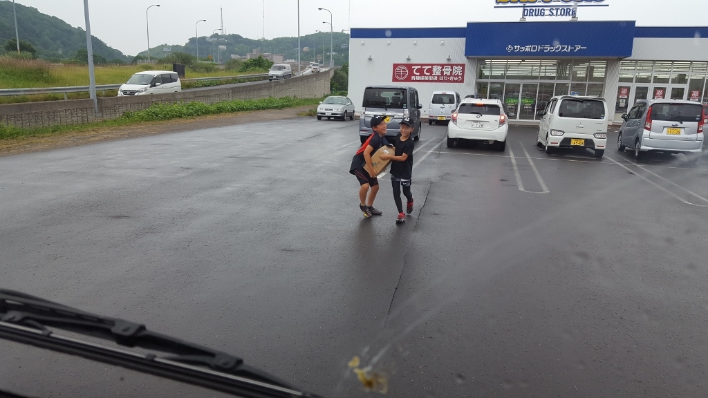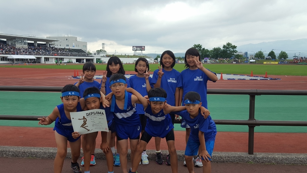 前日練習の15日(土)は、高速道路が通行止めになり、会場の開放時間に間に合わず、やむなく千歳の「青葉陸上競技場」で練習することに!![]()