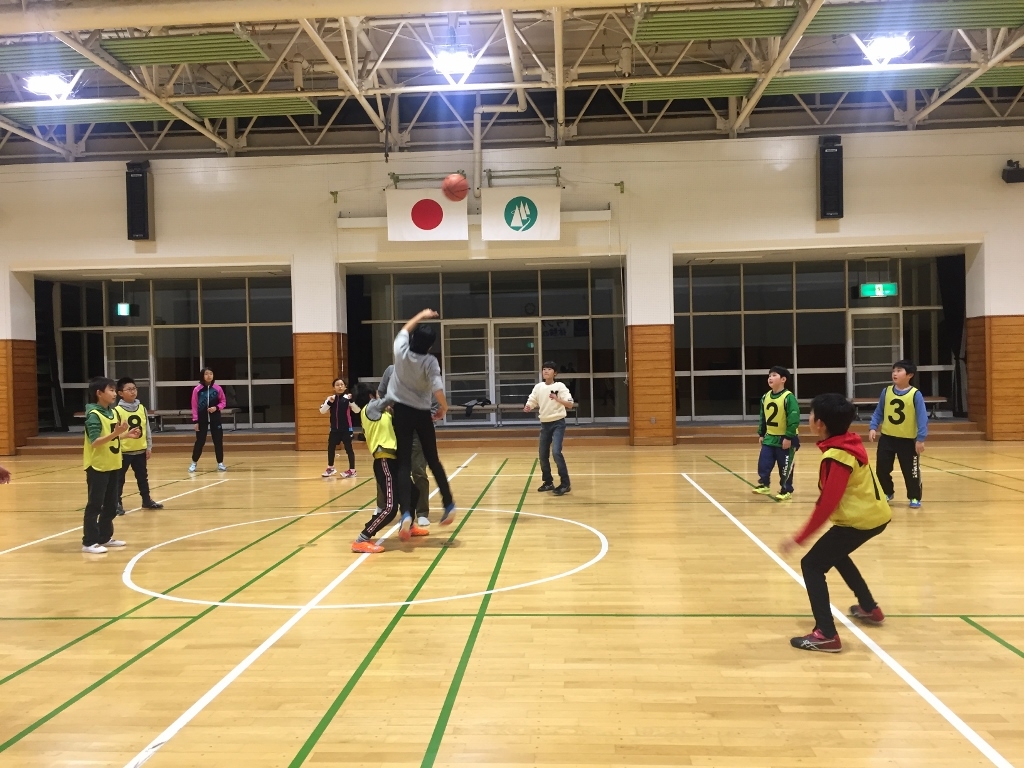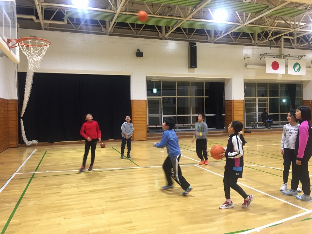 夕食後はバスケット交流