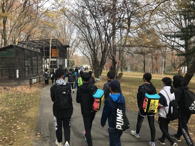 帯広動物園の近くにある、緑が丘公園の起伏のあるランニング&ウォーキングコースで約1時間練習をした後、歩いて動物園までみんなで行ました