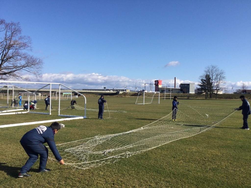 先日、半年間使用させていただいた幕別札内川河川敷サッカー場の清掃とゴール片付けを、中学1年生メンバーを中心に行ってきました