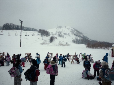 枝幸小学校の子たちが次から次へとスキー授業にやってきます。