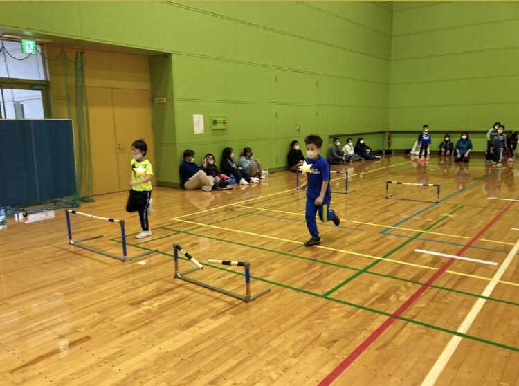 とにかく、陸上競技を楽しく知ってもらう!ことに重点をおき、公式種目のジャベリックボールや、スタートブロック、ハードルを体験しました!