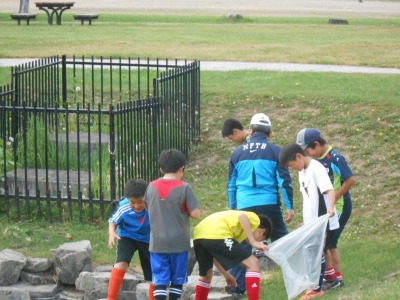 この光景がクラブならでは。小中高生が一緒になって作業が終了しました