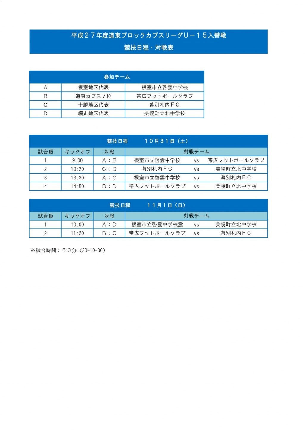 幕別札内FC中学生チームの道東ブロックカブス入替戦が10月31日~11月に開催されます!![]()
